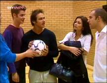Fletch out to do what he does best - a kick about with Danny, Stevie and Peggsy in the gym. Continuity: Lynda talks of when Fletch came to Harchester (presumably his 2000