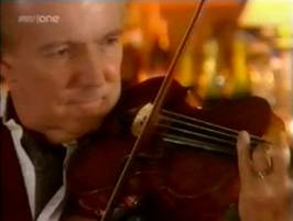 Serenading the diners at The Grange's Blue Room Restaurant, and finishes his set beside Danny and Rachel who have to kiss when he dangles mistletoe above them.